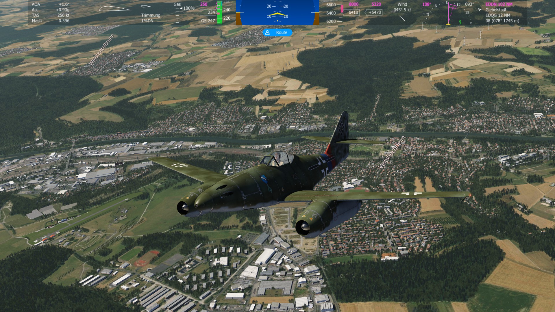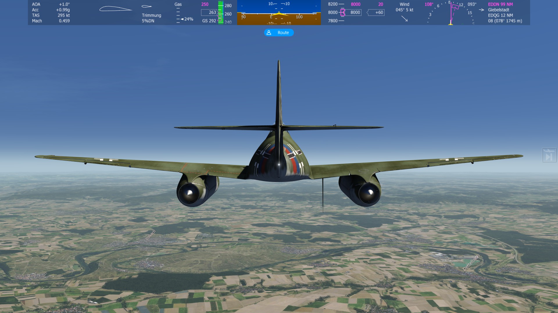 Rechtskurve einleiten um dem Flugplan zu folgen. |