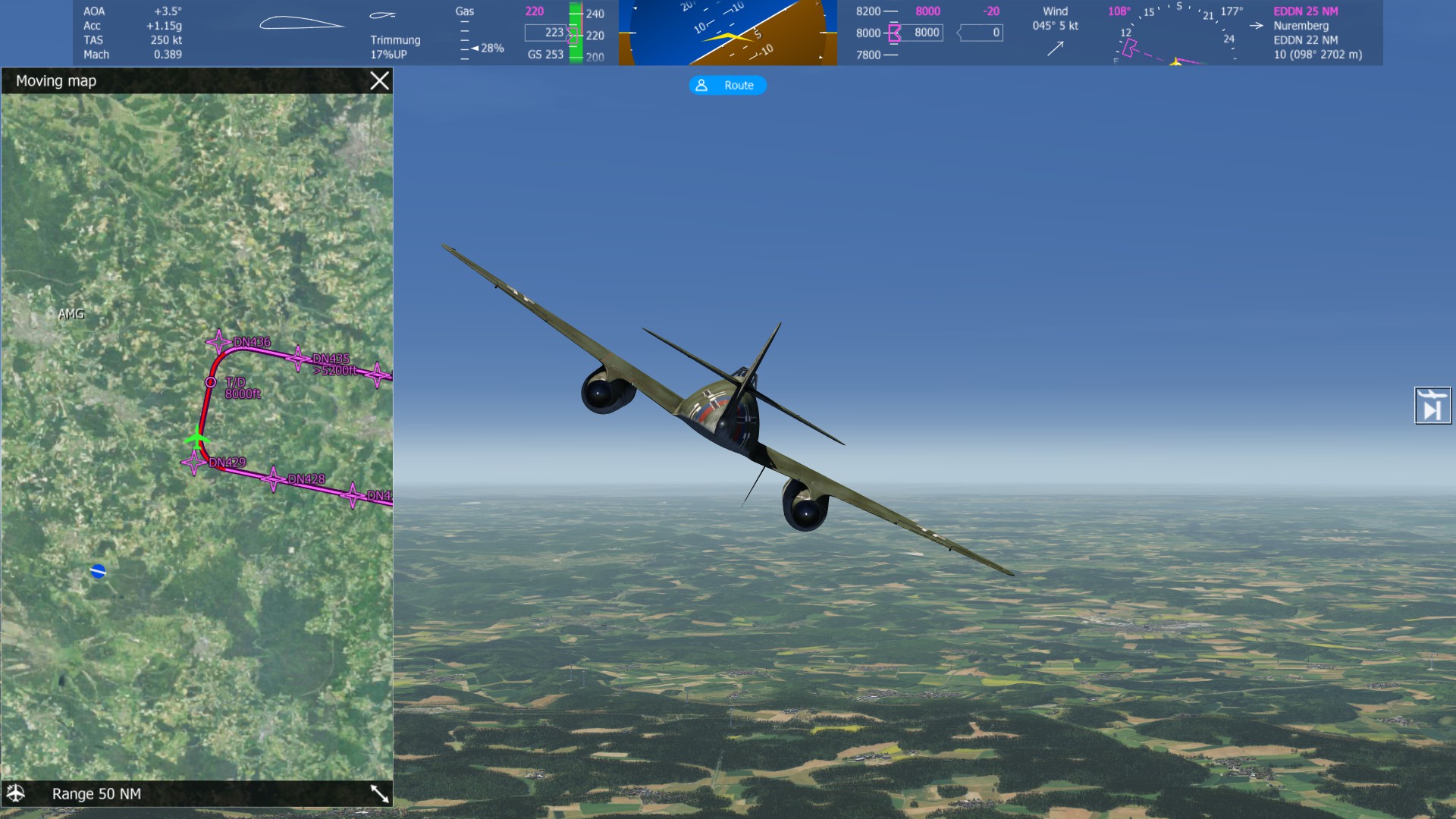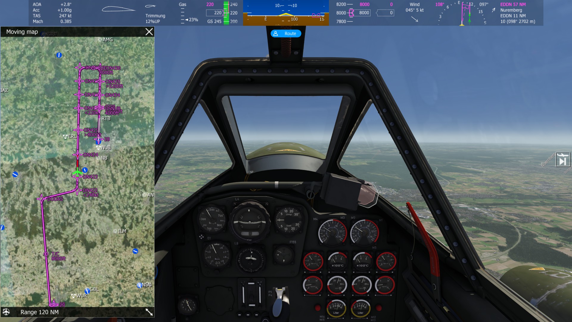 Links die Moving map oder Flugplan. |